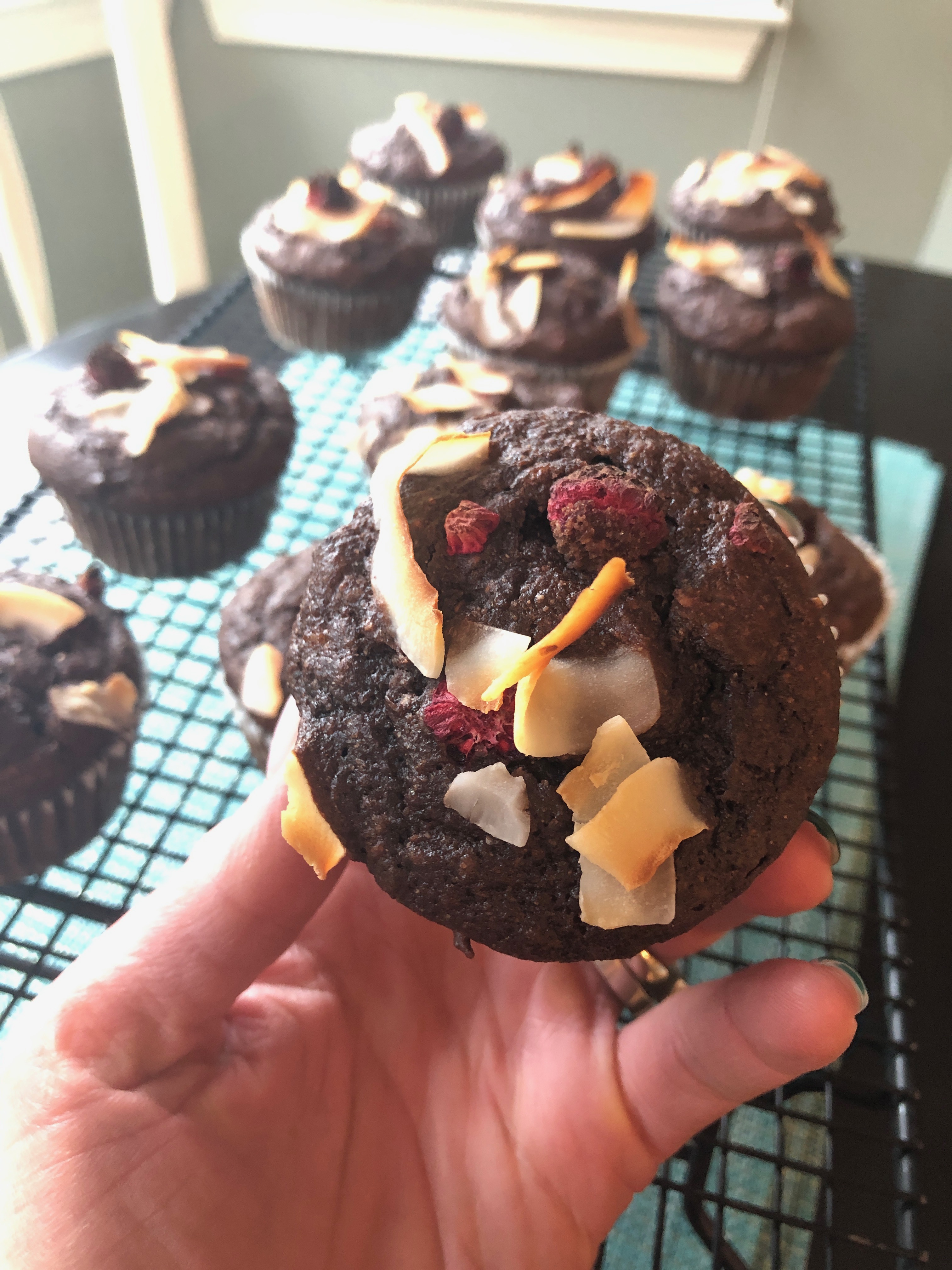 IMG_9724 Next Published March 29, 2019 at 3024 × 4032 in Double Dark Chocolate Muffins with Raspberry and Coconut