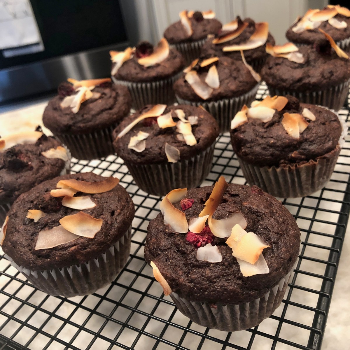 IMG_9731 Previous Next Published March 29, 2019 at 3024 × 3024 in Double Dark Chocolate Muffins with Raspberry and Coconut